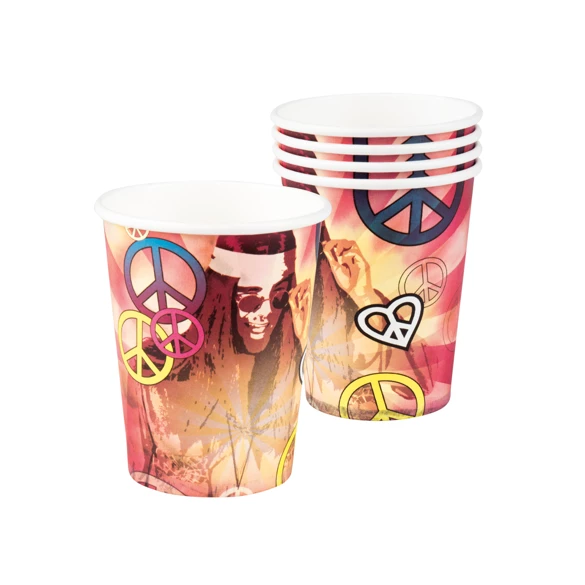 Pour complèter votre déco hippie, ornez votre buffet de gobelets sur le thème années 70