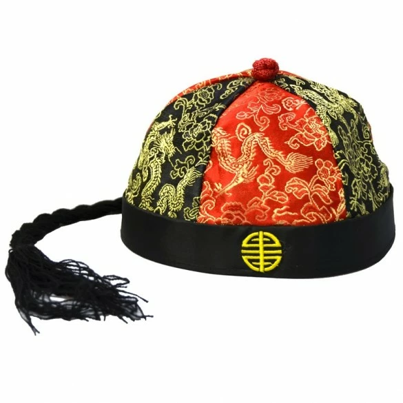 Chapeau tissu de mandarin avec tresse pour votre déguisement chinois
