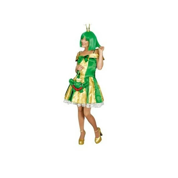 Déguisement deluxe de princesse grenouille comprenant la robe courte or et verte et un jupon.