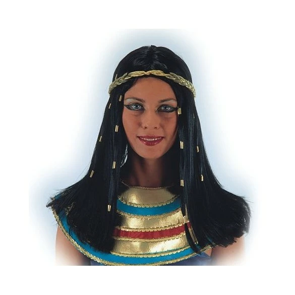 Devenez la souveraine d’Egypte avec cette Perruque Cléopatre mi long de couleur noire,avec tresses et dorures. Indispensable pour ressembler à la reine du Nil !!