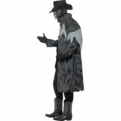 Le costume du cowboy zombie du village fantôme d’Halloween fera peur à tous vos invités, lors de votre soirée Halloween !!!! Le déguisement est composé de la veste, de la cagoule, des gants et du chapeau.